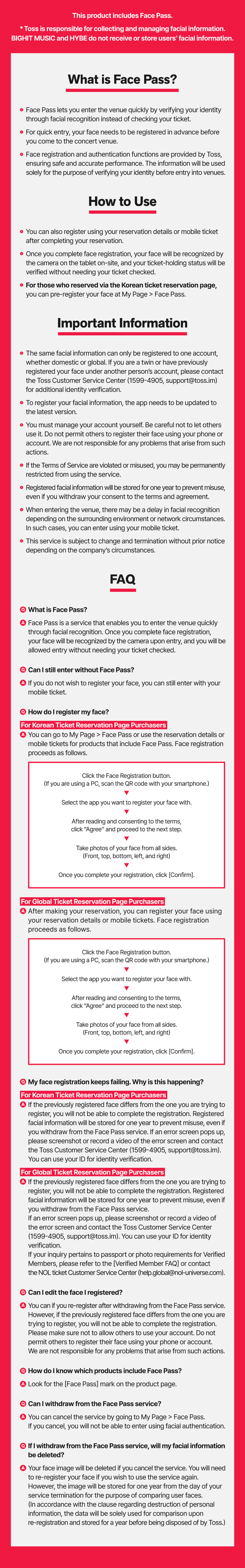 ※ This concert will be held on a 360-degree stage, with no designated front stage location, allowing viewing from anywhere in the entire venue. However, please understand that, due to the characteristics of the stage, even if your seat is not classified as a restricted view seat, your view may be partially obstructed by stage structures/equipment depending on the production situation and the artist’s position.