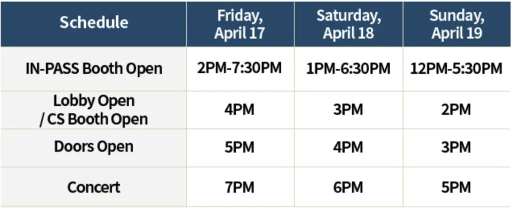 If you are traveling from Seoul, free shuttle buses to Inspire Resort are available from Namguro Station and Daerim Station. Plus, an Arena-bound shuttle operates from Exit 2 of the Incheon Int'l Airport Cargo Terminal Station (AREX). 🚎 Cargo Terminal Station ↔ Inspire Arena • Travel Time: Approx. 20 minutes • Intervals: Every 20 minutes • Operating Hours: From 5 hours before the show until the start of the performance. 🚌 Post-Concert Shuttle After the show, shuttle buses will run from Inspire Arena to Incheon Int'l Airport Terminal 2 Station (AREX). • Operating Hours: From the end of the show until 1 hour 30 minutes after the performance.