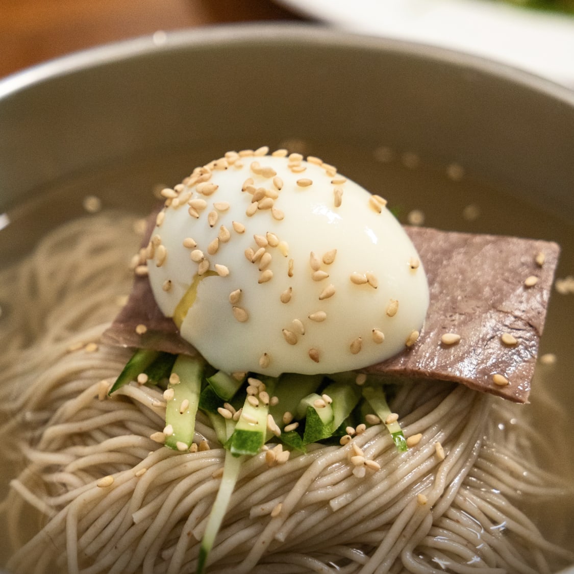 Pyeongyang Naengmyeon restaurant run by the same family for three generations. The broth is refreshing, and the noodles are rich with the nutty flavor of buckwheat. The noodles are slightly brittle but have a satisfying chewiness. Their Bibim Naengmyeon is known for its savory and slightly spicy flavor, with a balanced sweetness. Unlike other Pyeongyang Naengmyeon spots where Mul Naengmyeon is the overwhelming favorite, this place also has strong fans for its Bibim Naengmyeon.