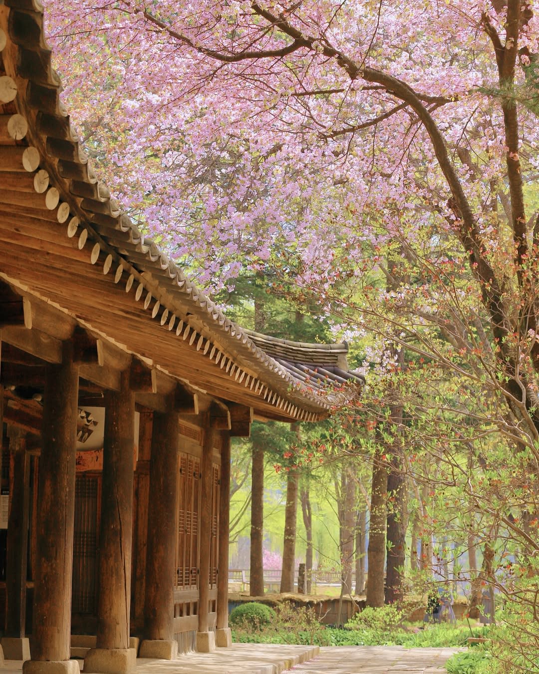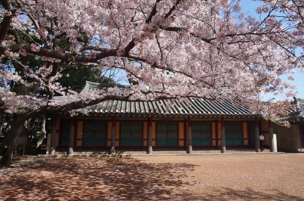 Samseonghyeol is a mystical site deeply rooted in the founding myths of Jeju Island. When cherry blossoms bloom among the ancient, towering trees, they take you back in time.