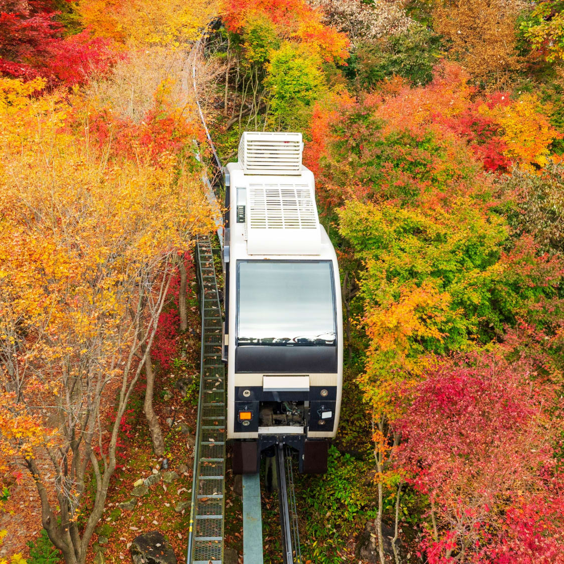 It boasts various hiking trails categorized by difficulty and duration, making it a perfect spot for anyone—from beginners to experienced hikers—to enjoy the autumn leaves while climbing. If hiking feels too strenuous, you can take the cable car up to Gwongeumseong Fortress to capture a breathtaking, panoramic view that stretches from Sokcho city all the way to the East Sea.