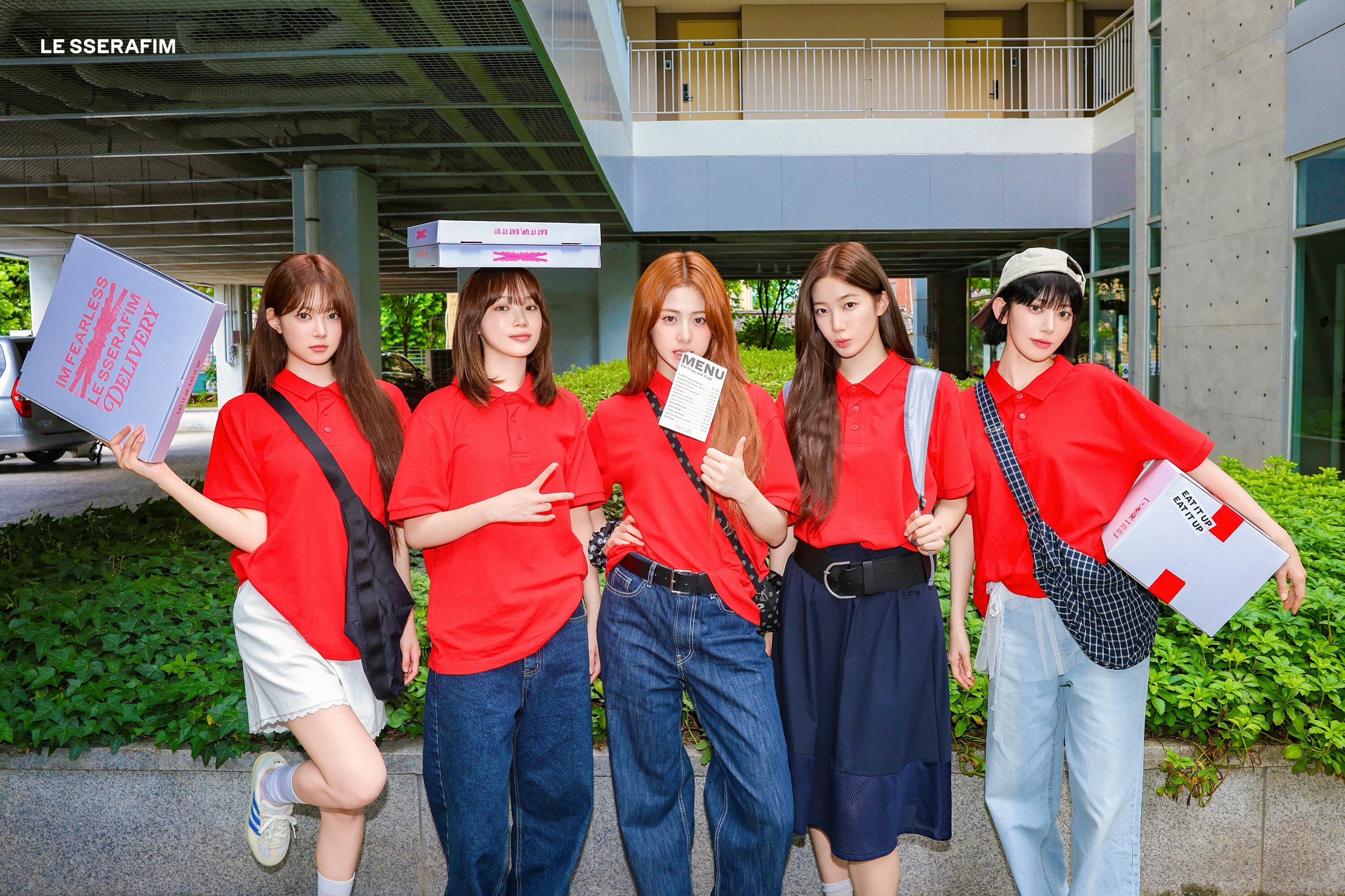 Shops from Cheongnyangni Traditional Market appear in the concept video: Geumgang Sanghoe (Sakura), Chamsae Bangatgan (Hong Eunchae), and Bada Susan (Kim Chaewon). The members totally slayed this wild ‘Spaghetti X Korean Traditional Market’ mashup, showing off a bold and unique worldview for this new era!
