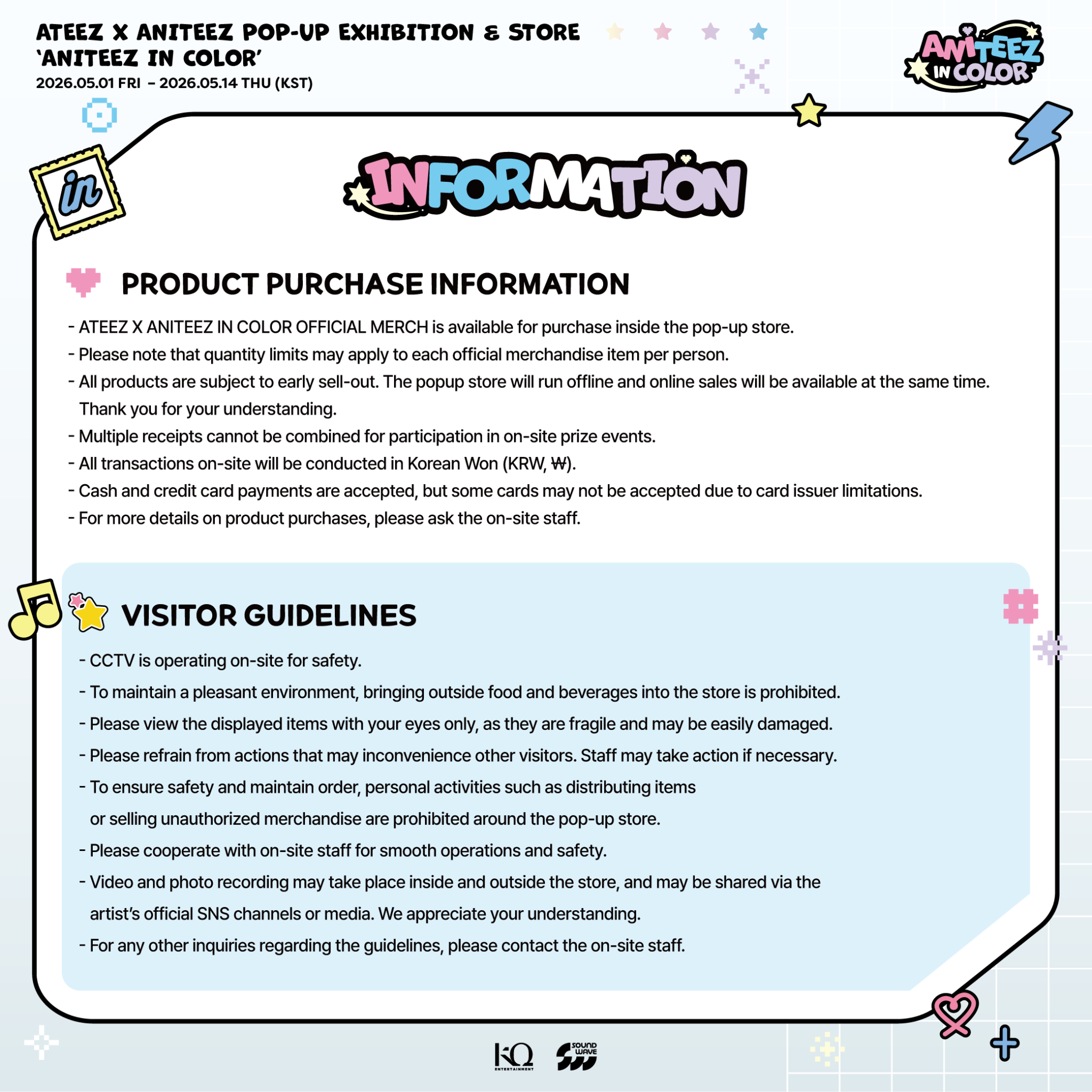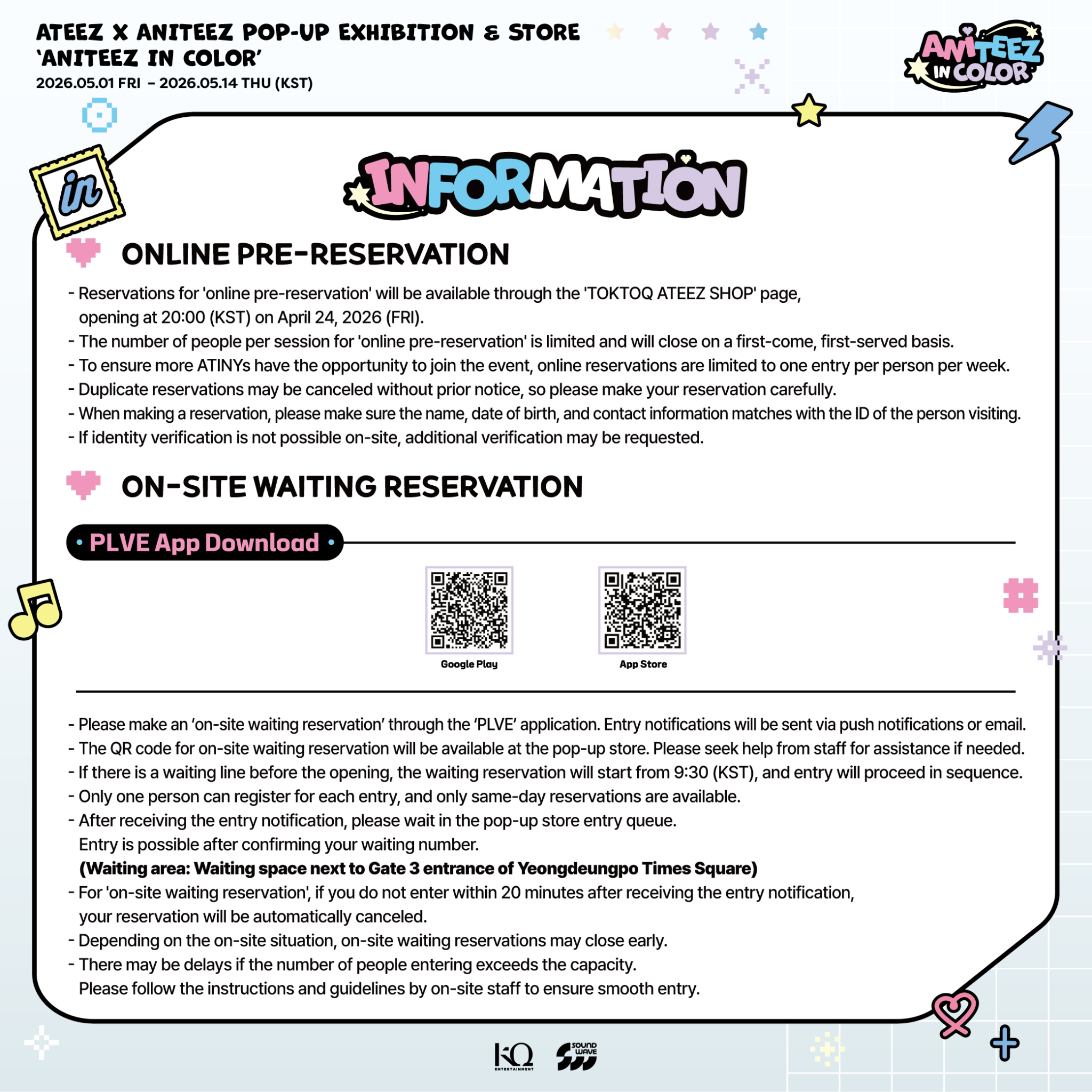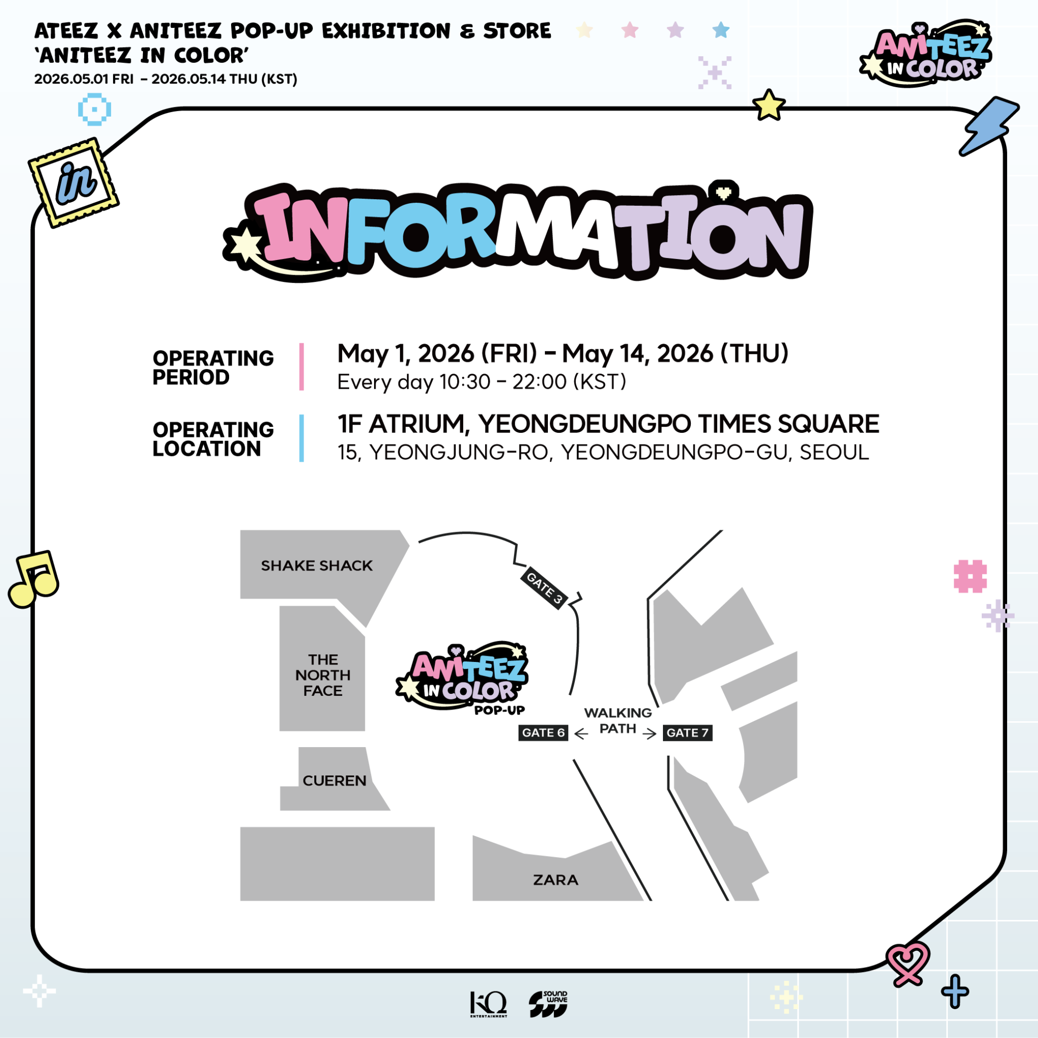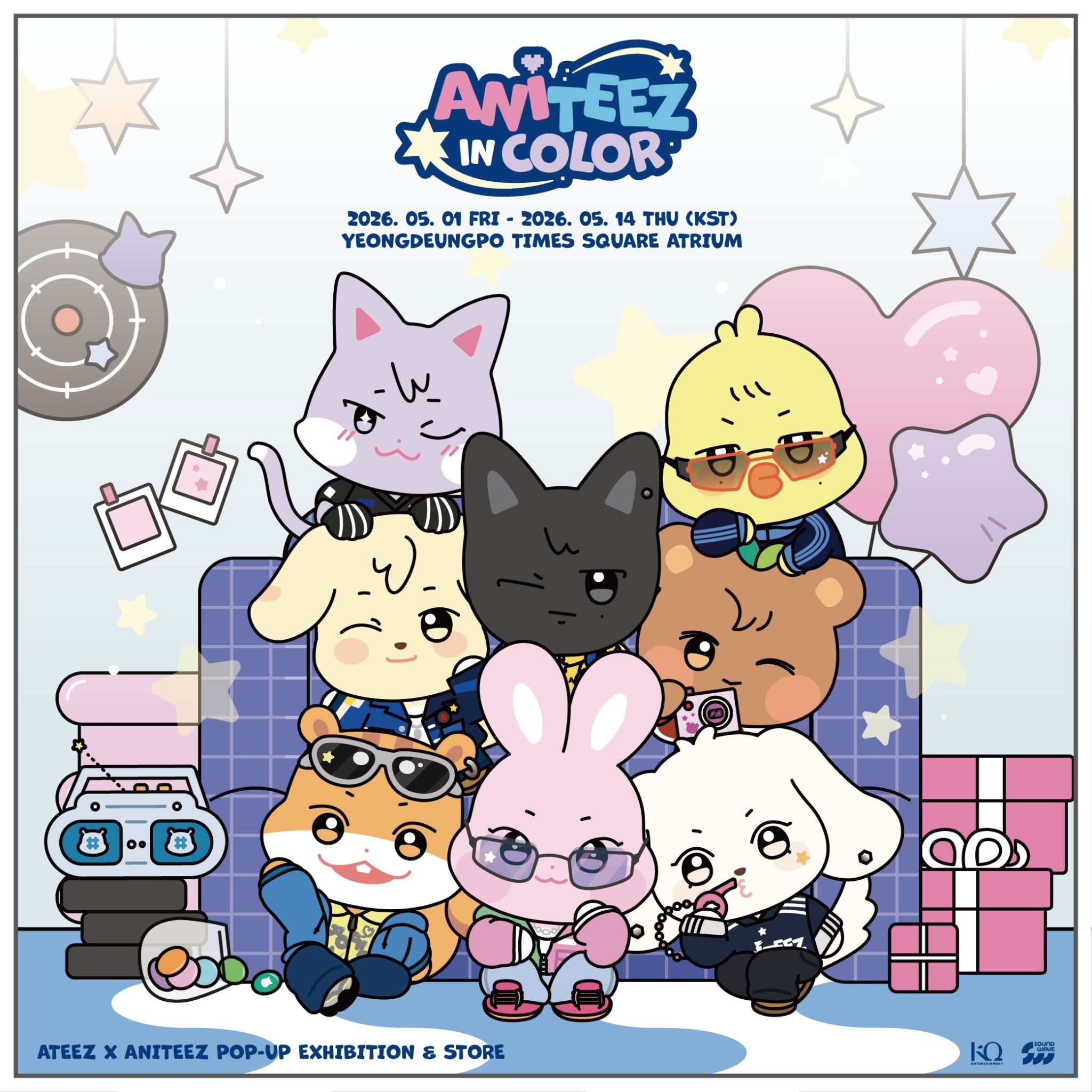 ATEEZ's character ANITEEZ, who has transformed with various concepts, is returning this time with more vibrant colors. And ANITEEZ's freer and cuter appearance is drawing attention. This pop-up store event will be grandly held at Yeongdeungpo Times Square Plaza, so we hope to meet more ATINY! Both online pre-booking and on-site reservations will be available, so please make sure to check the reservation and admission guide before visiting. ✅ Online Pre-booking Opens: Apr 24 (Fri), 2026 20:00 (KST) ~ 📍 1F Atrium, Yeongdeungpo Times Square 🗓️ May 1 (Fri) - May 14 (Thu), 2026