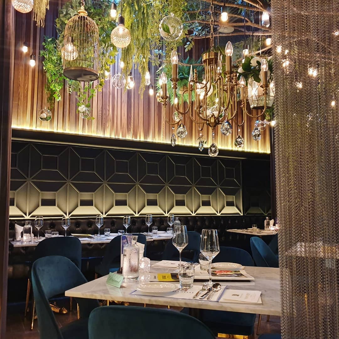 Dine in a dimly lit Western specialty restaurant