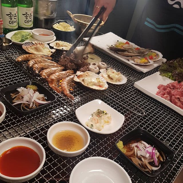 K-BBQ spot for some shrimp, beef, and cheesy scallops topped with veggies