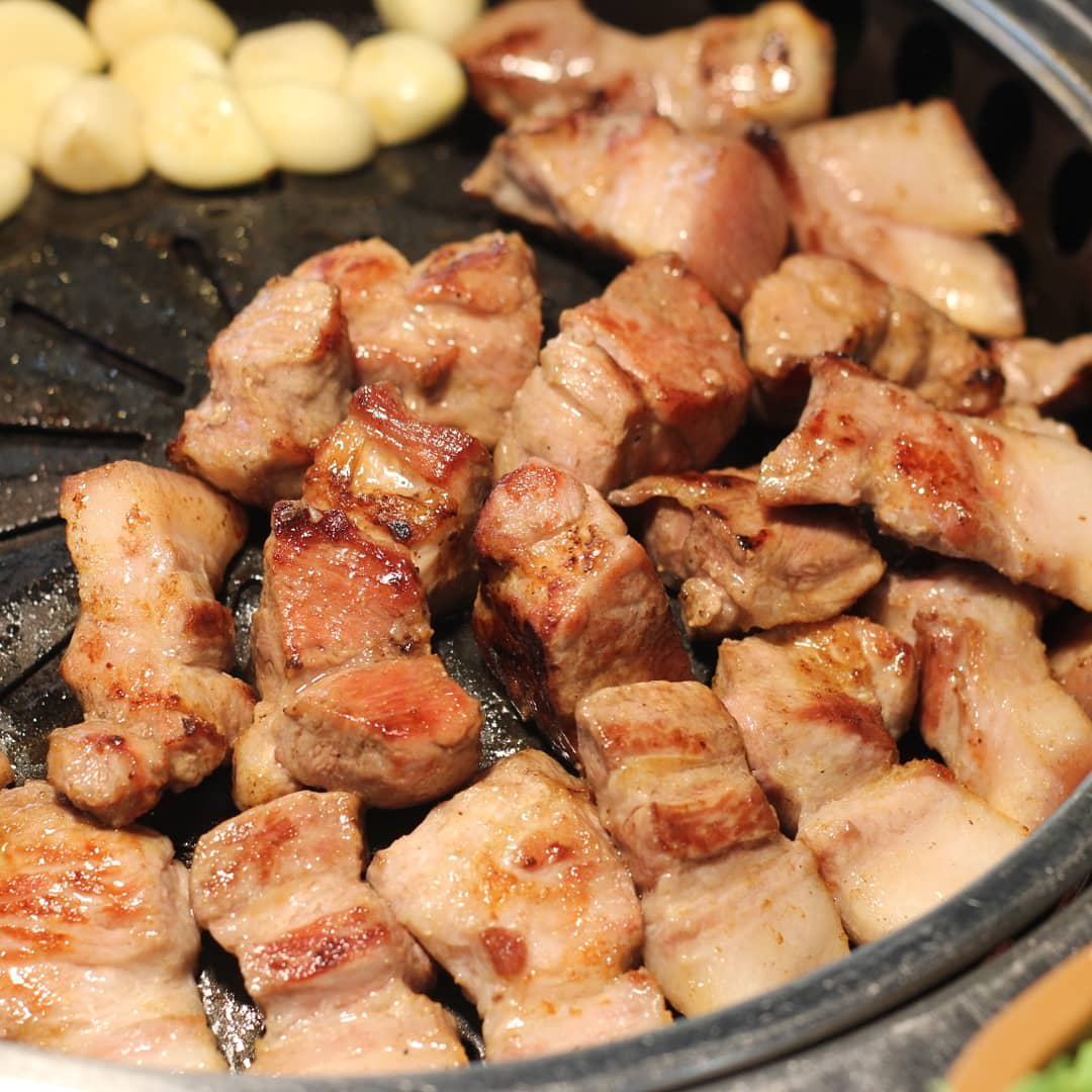 Enjoy the tender, charcoal-grilled black pork at this franchise KBBQ restaurant