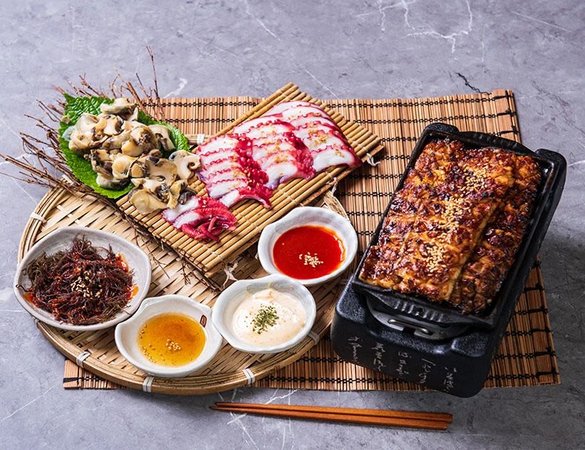 Enjoy grilled eels and other seafood as part of a generous set menu