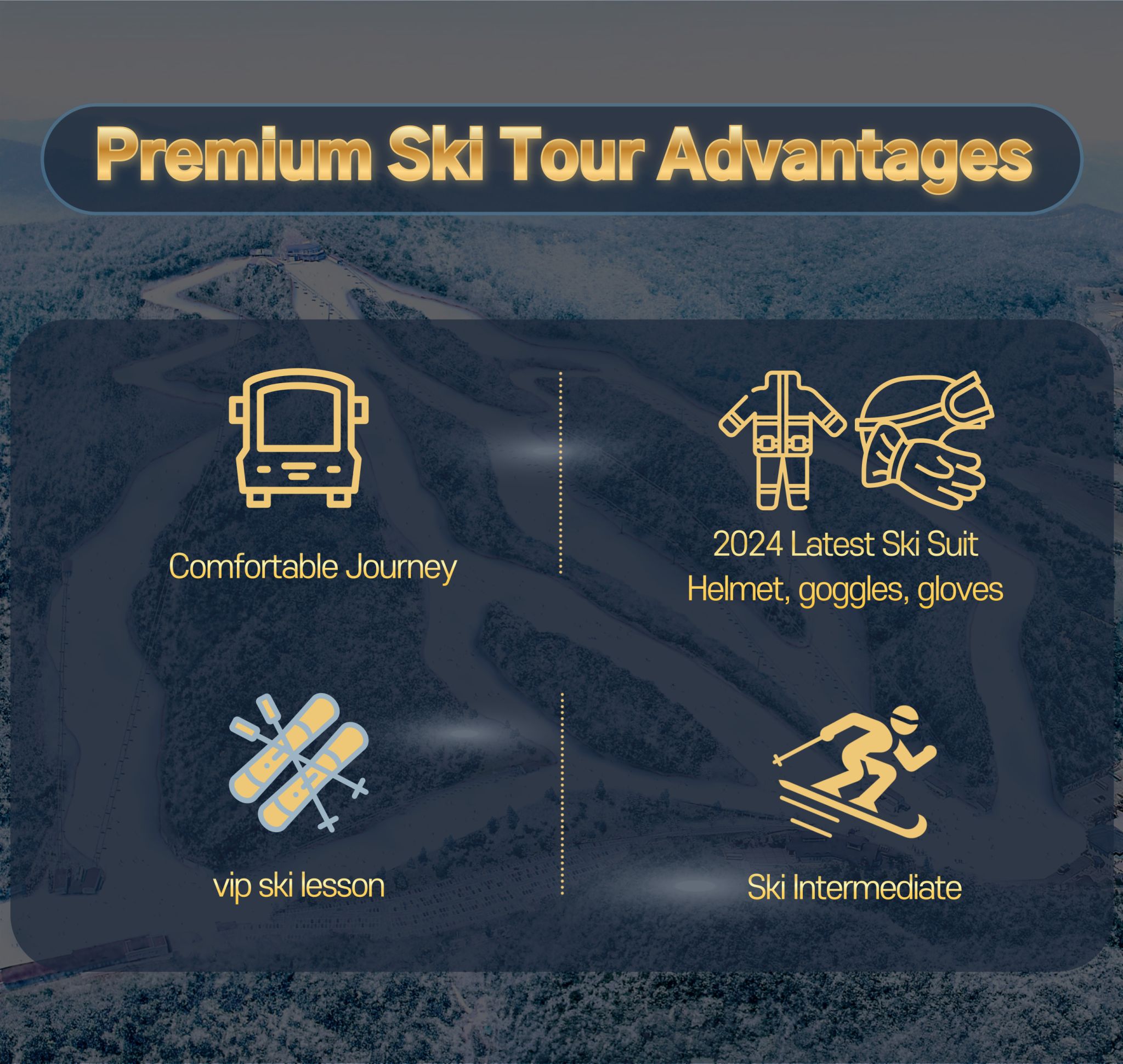 Indulge in a premium skiing experience at the renowned Elysian Gangchon Resort. This exclusive package offers a range of exceptional amenities and services to elevate your winter adventure. For your skiing lessons, you'll benefit from small group instruction, with a maximum of 13 students for beginners and 8 students for intermediate skiers. This ensures personalized attention and the opportunity to progress at your own pace, under the guidance of experienced instructors.