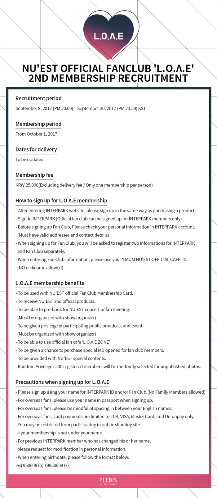 NU’EST OFFICIAL FAN CLUB ‘L.O.Λ.E’ 2nd Recruitment
