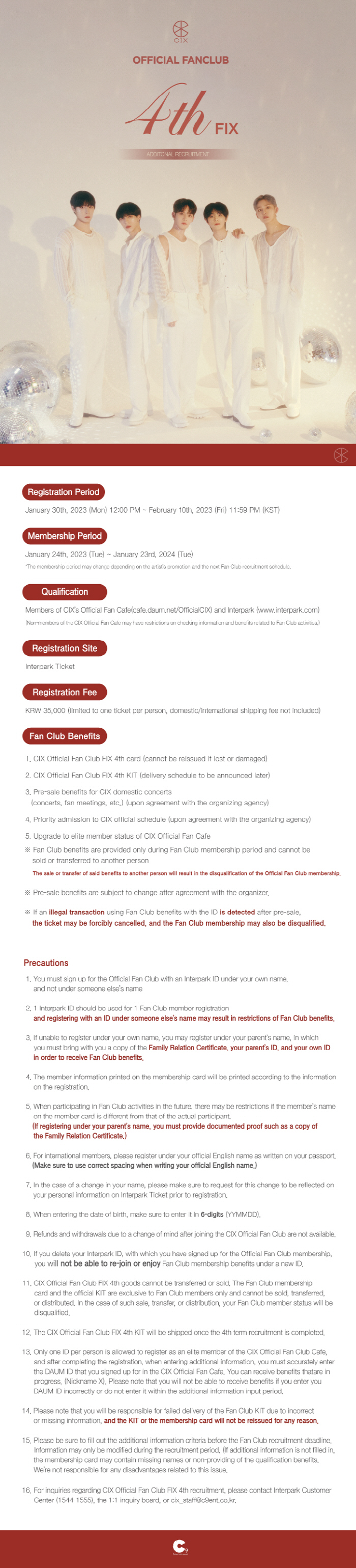 CIX(씨아이엑스) 공식 팬클럽 FIX(픽스) 4기 추가 모집