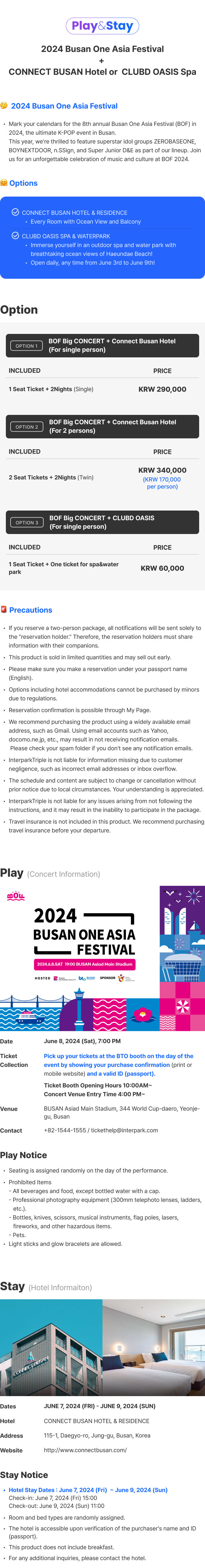 ![[Play&Stay] 2024 Busan One Asia Festival(BOF)+ CONNECT BUSAN Hotel or CLUBD OASIS Spa](https://ticketimage.interpark.com/Play/image/large/24/24005929_p.gif)