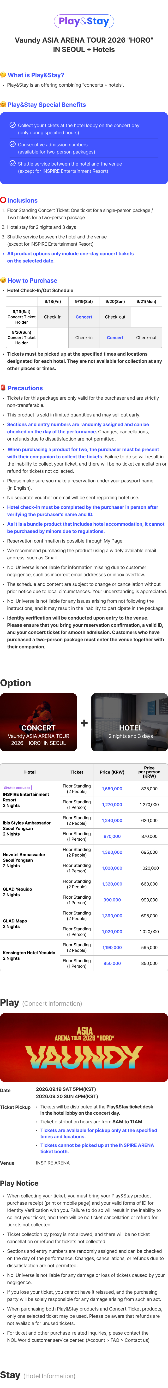 [Play&Stay]Vaundy ASIA ARENA TOUR 2026 "HORO"IN SEOUL+Hotels