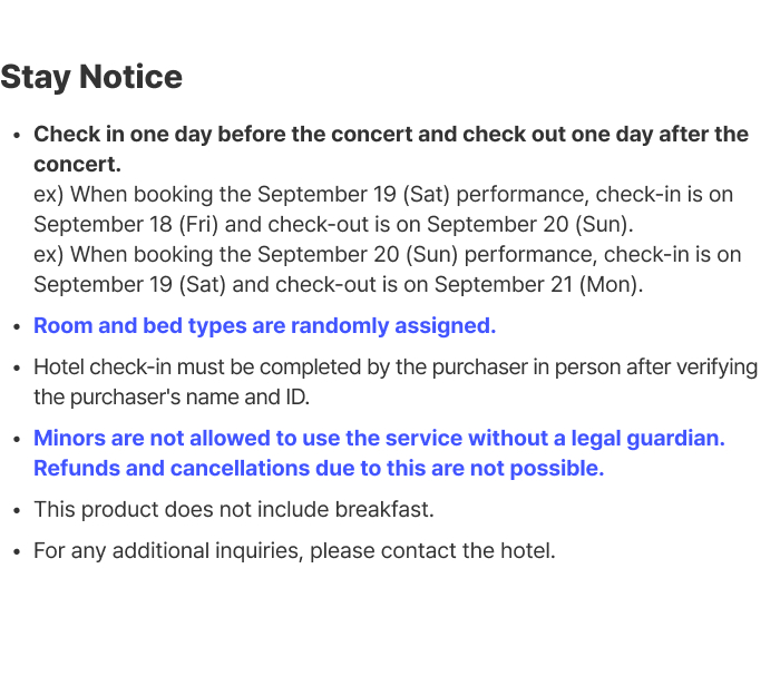 -Play&Stay Shuttle departure time can be confirmed at the hotel on the day of the concert.