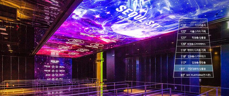 位于世界第5高、韩国最高大楼乐天世界塔的117–123层,Seoul Sky 观景台以500米的高空与360°视野呈现首尔最梦幻的天际线,是近年非常受欢迎的新兴景点。