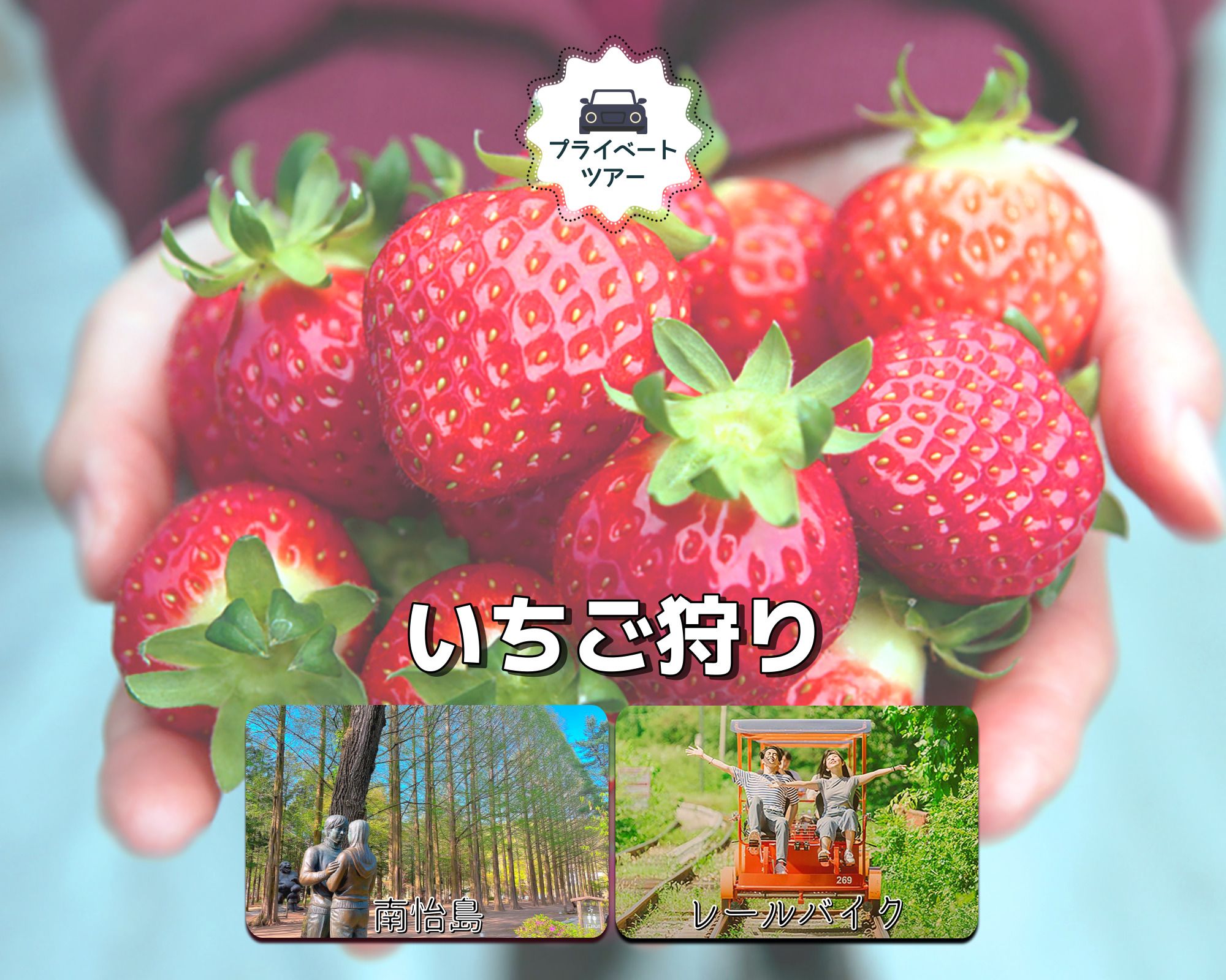 南怡島・いちご狩り・レールバイク・ プライベート·ツアー