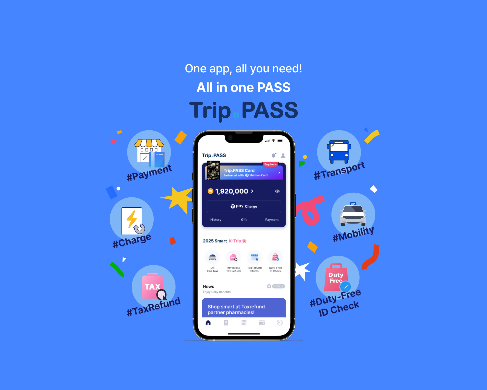 - With just your mobile phone and passport, you're all set for transportation and payments while traveling in Korea! Easily use public transport, link your Trip.PASS CARD with the app, and enjoy a smoother journey with multiple charging and payment options. Plus, take advantage of Tax refund, duty-free discounts, and other exclusive benefits!