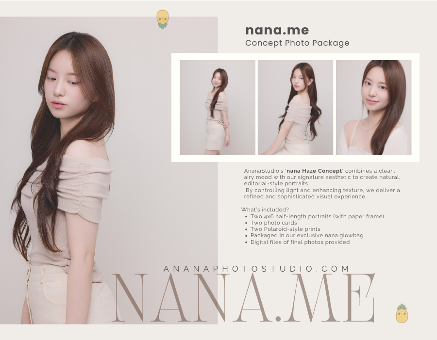 AnanaStudio Seongsu (아나나사진관 성수스튜디오) is a photo studio in Seongsu, Seoul that offers more than just pictures — we deliver meaningful photography that captures your most authentic self.