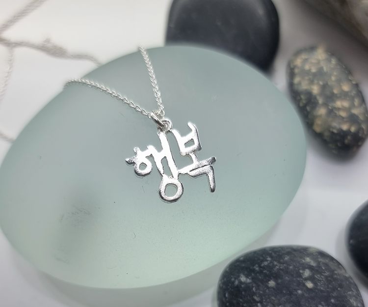• 完成设计后,用银焊固定每个辅音和元音,彻底整理银色表面并抛光。 用韩文设计-> 修补-> 用砂纸整理-> 通过抛光过程完成银饰品。