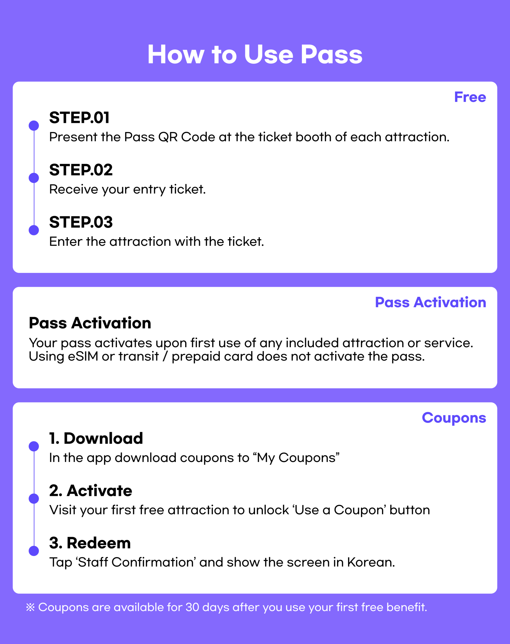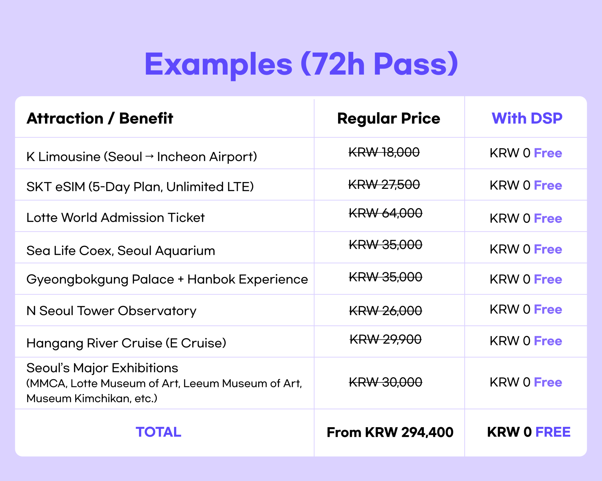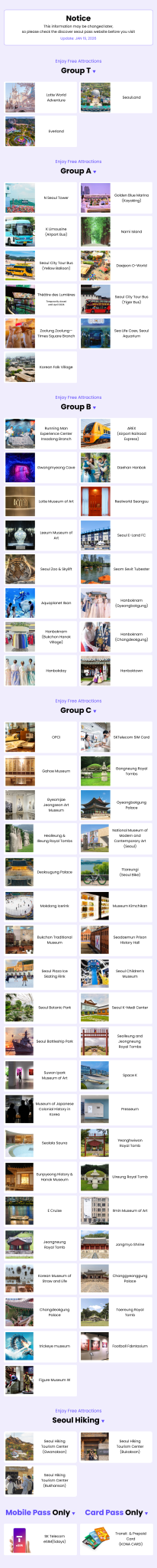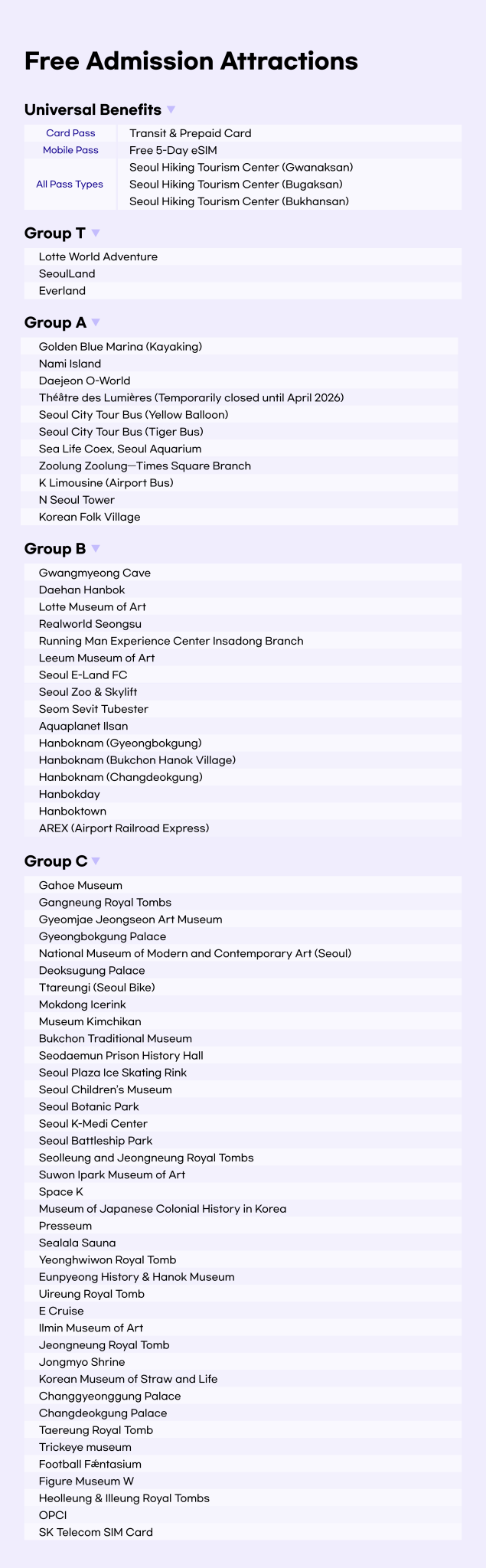 - Enjoy free admission to 70+ major tourist attractions in Seoul.