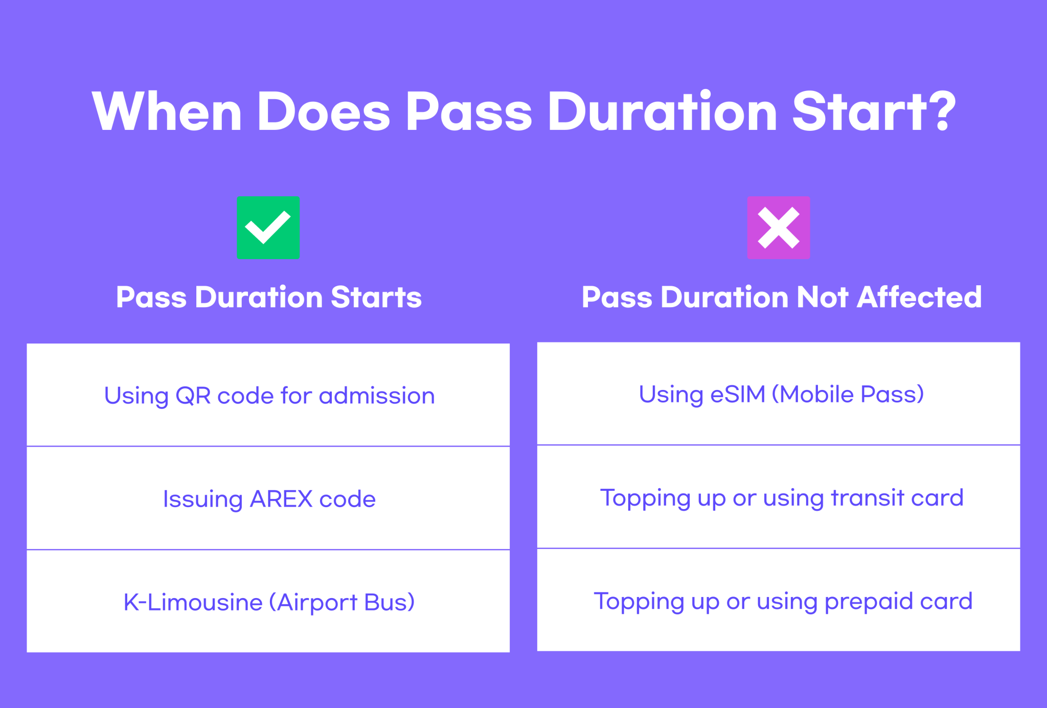- Free rides on Airport Railroad Express Train(AREX), Seoul Bike(Ttareungi), airport buses(K-Limousine) and city tour buses.