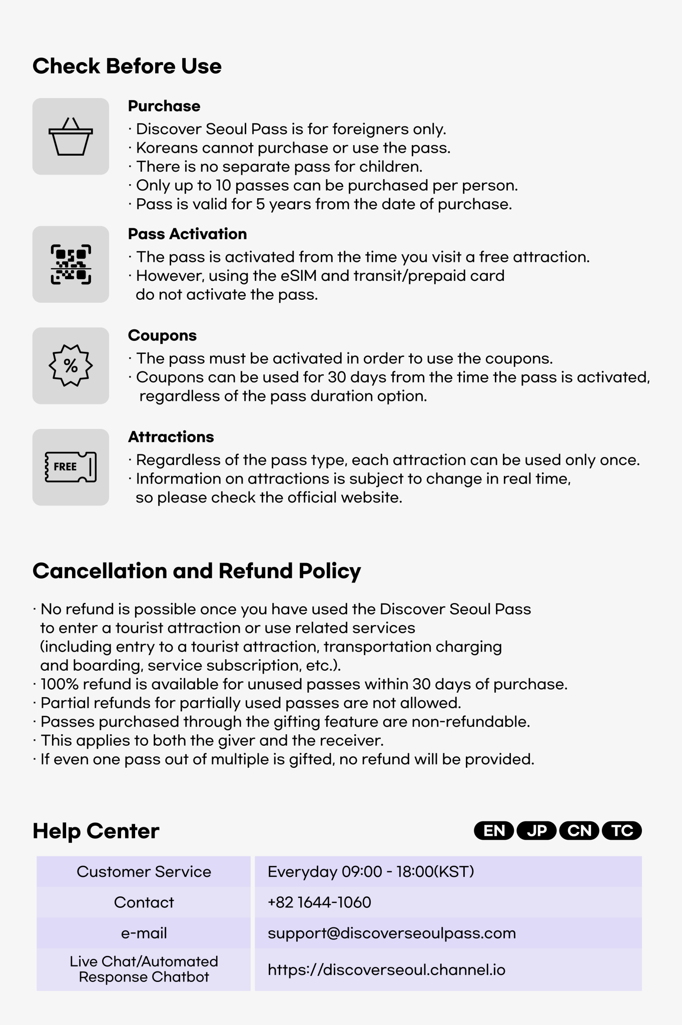 Discover Seoul Pass Mobile offers free admission for representative tourist attractions in Seoul and provides additional discounts with a designated time.