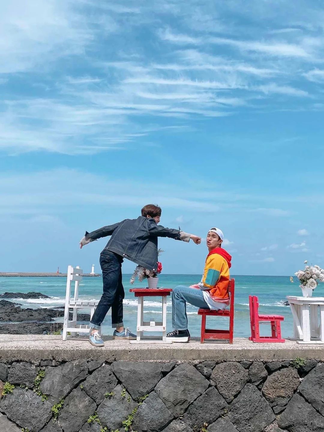 ジョンハン、ドギョム、スングァンがセファ海辺を背景に写真を残したオーシャンビューカフェ。カフェ前の椅子はメンバーと同じ構図で認証ショットを撮ろうとするファンで賑わう定番フォトスポット。トレカをお忘れなく!