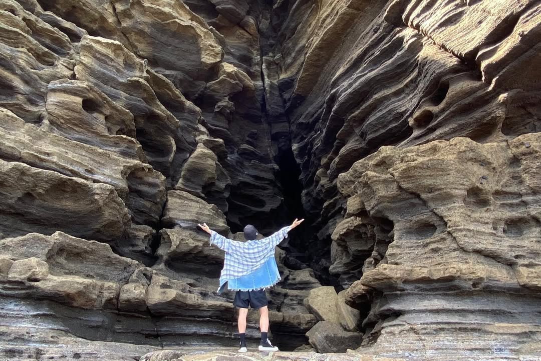 211006 ホシがインスタグラムに認証ショットを投稿した場所。迫力ある奇岩の断崖と打ち寄せる波が織りなす絶景が広がります。天候や潮の満ち引きによっては入場が制限される場合があるため、訪問前の確認必須です。(スニーカー着用推奨!)