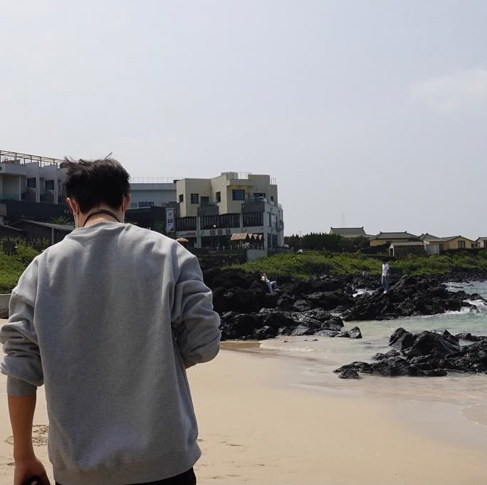 240925 ジョンハンが三陽海水浴場の東屋周辺の写真をインスタにアップロードしました。黒い砂浜で有名なビーチです。