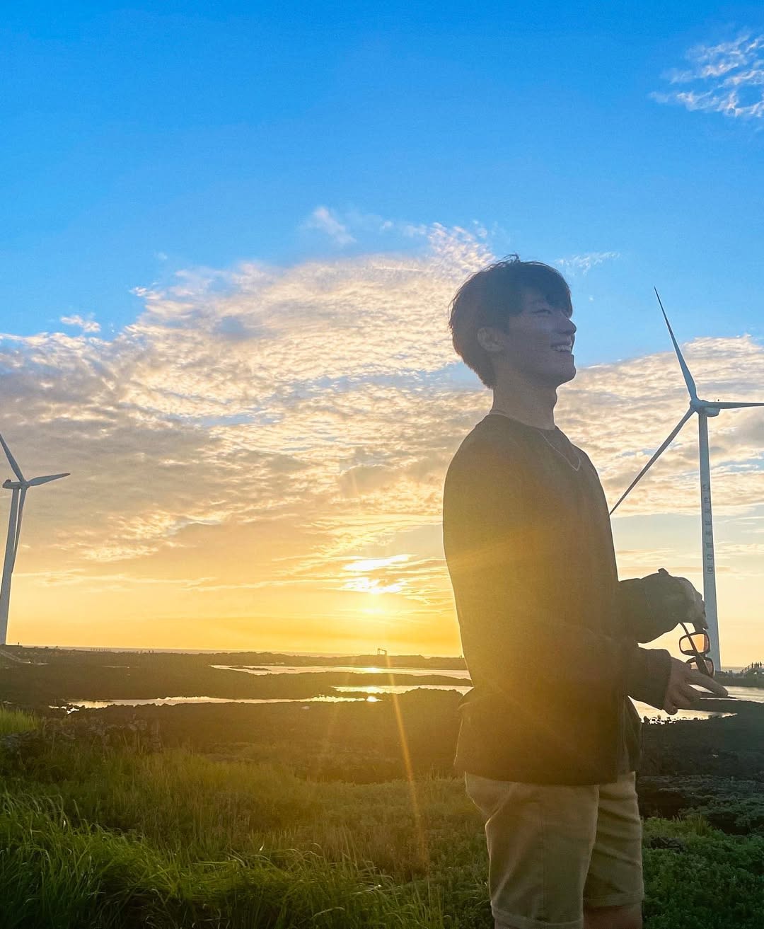 220801 ディノのインスタ写真に登場した、風力発電機が見える夕焼けの名所。スングァンやジョンハンも訪れたことがあります。海の上に並ぶ風力発電機と赤く染まる夕焼けが重なり、異国的な絶景を演出。日没の時間帯に訪問すれば、メンバーのように逆光シルエット写真を残せます。
