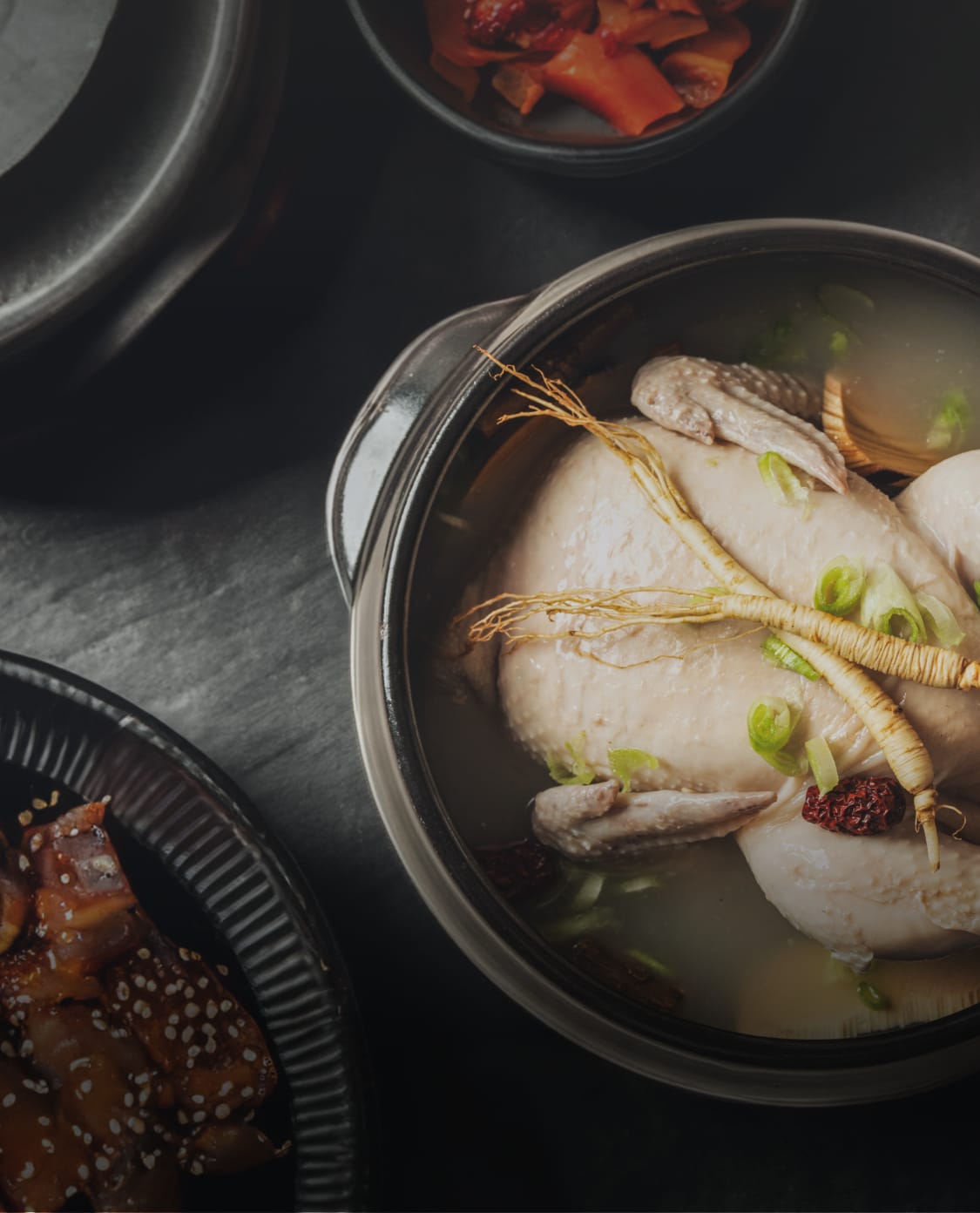 ミシュランガイドがおすすめする老舗参鶏湯専門店。高麗サムゲタンは1960年から60年以上に渡って営業している伝統あるお店です。「韓国の参鶏湯」といえばX字に組まれた鶏の足と鶏のお腹に詰めたもち米、参鶏湯に入れる各食材を思い浮かべますが、これはこのお店から始まったとも言われています。 この店の参鶏湯は、透き通ったスープとさっぱりとした味わいが特徴。若鶏を使用し、4時間以上じっくりと煮込んで作られるため、鶏から出たダシが柔らかく、逸品です。ナツメのほのかな甘味と水蔘(乾燥させる前の高麗人参)の香りが印象的で、空腹を満たしてくれる柔らかいもち米まで、すべての調和が取れています。