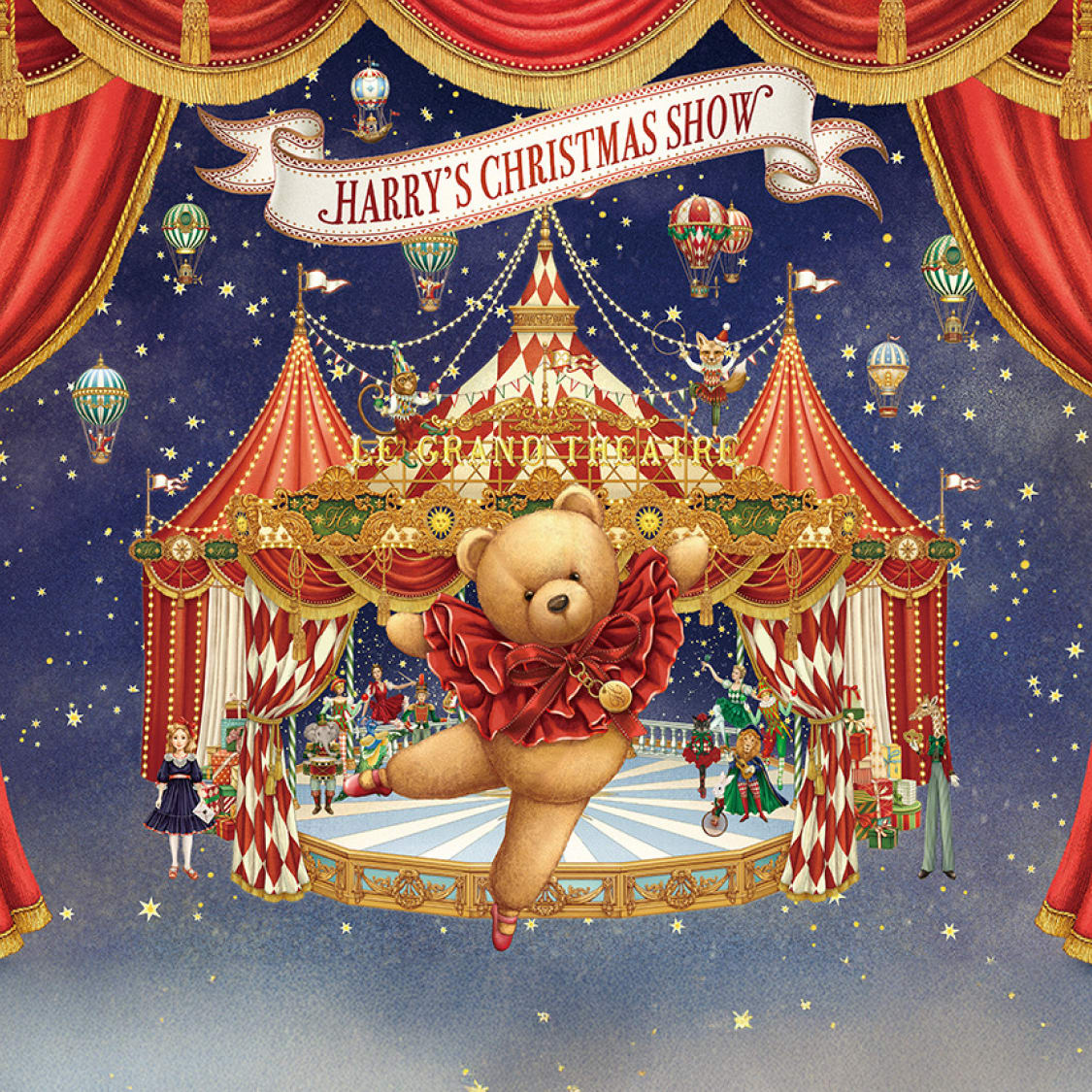 ザ・ヒョンデ・ソウル5階にオープンしたクリスマスH-Village!毎年新しいテーマで装飾されるこの場所。今年は「世界最高のクリスマスショー『動く大劇場』を探して冒険を繰り広げる少女の物語」がコンセプトです。色とりどりのテントと華やかなベルベットカーテンで囲まれた未知の世界を通り過ぎると、ライオンと象がワルツに合わせて踊る「音楽劇場」、クジャクとサルが不思議な芸を披露する「芸術劇場」がお目見え。猫がマジックを披露する「マジック劇場」を通り抜けると、ついに壮大な「大劇場(Le Grand Theatre)」が登場します。