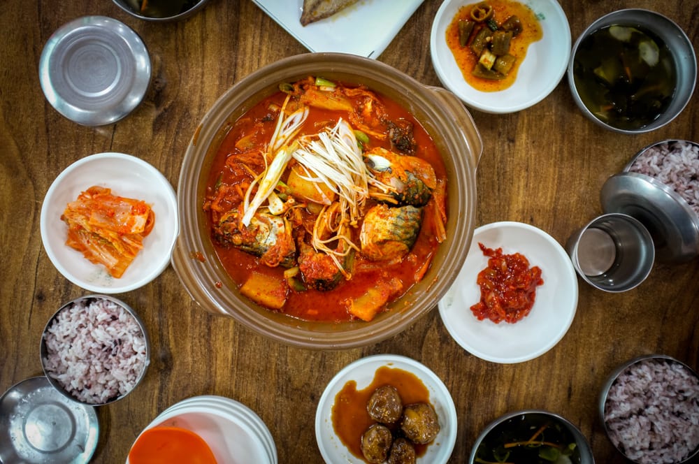 済州島を代表する市場である「東門(トンムン)在来市場」から車で6分のところにある飲食店。新鮮なサバの刺身が食べられるお店で有名です。鮮度のいいサバの刺身は臭みがなく脂のりも絶妙!メニューを頼むと焼きアカアマダイとムール貝のスープ、緑豆チヂミなどメイン並みにおいしいおかずが出てきます。また、刺身の盛り合わせを頼むとメウンタン(ピリ辛海鮮鍋)も食べられます。