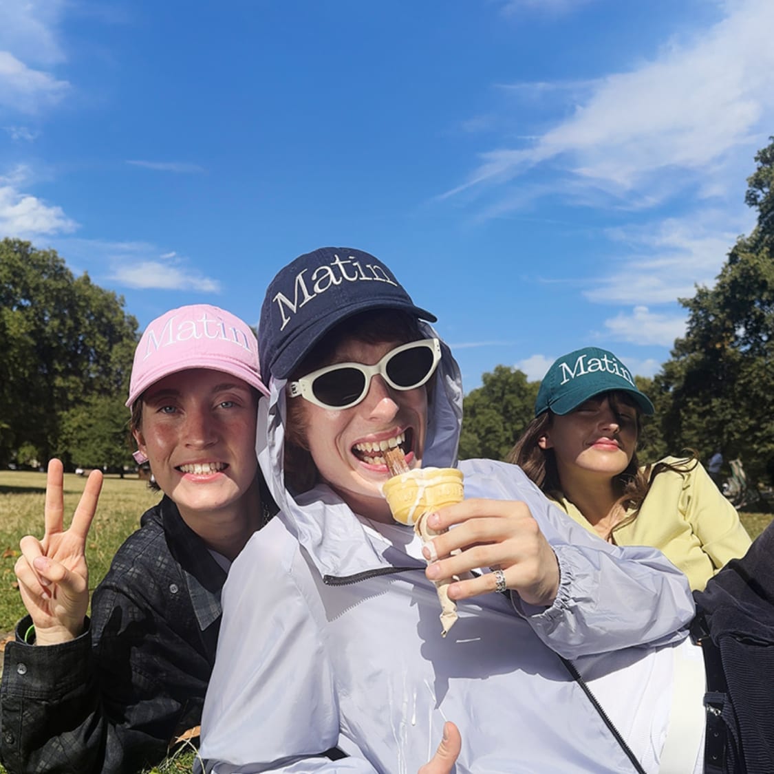 emisの定番アイテム。素材やカラー展開が豊富で、キャップの中央には刺繍で「emis」のロゴが施されています。BLACKPINKのジスが空港ファッションで着用したりとアイドルや芸能人の中でも人気。