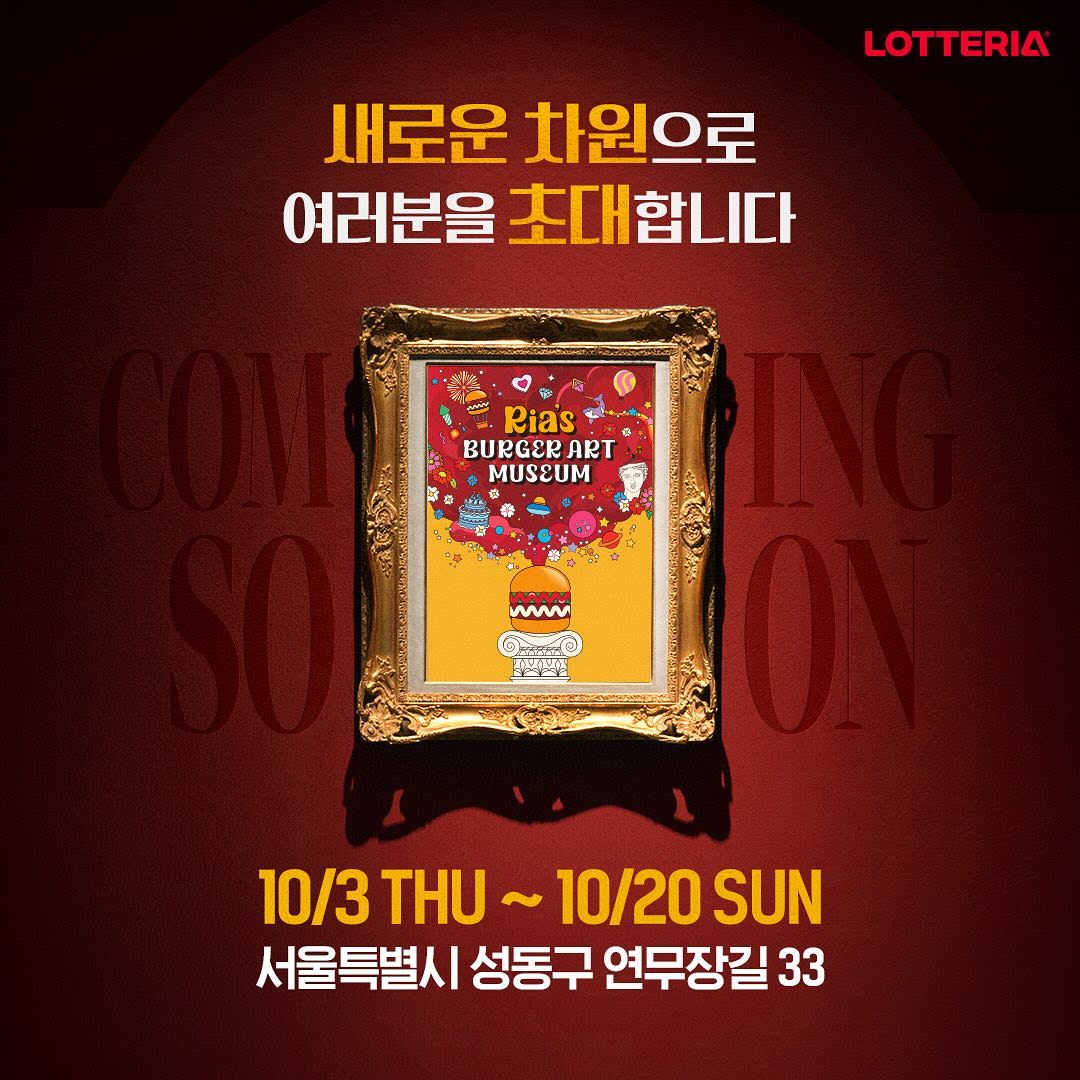 ロッテリア創立45周年を記念して、ブレインアートをテーマにした「リアーズバーガーアートミュージアム」がポップアップストアが聖水にオープン! ロッテリアの45周年を盛り込んだ展示と自分だけのグッズ作り、バーガーとペアリングフードも味わえる異色のポップアップストア!限定グッズも購入可能で、AIブレインアート体験も参加できるそうなので、ぜひ訪問してみてください。 📍Lia Burger Art Museum 🗓️10.3(木) - 10.20(日)