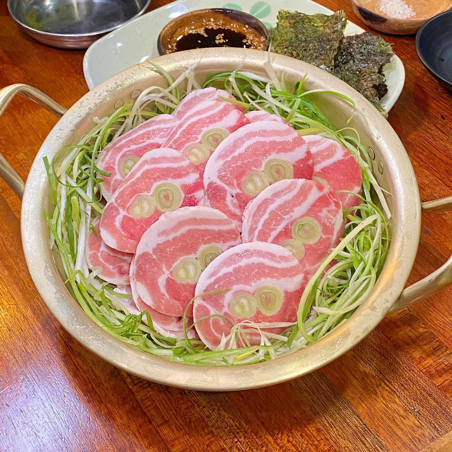 ネギを挟んだ冷凍サムギョプサルとボリューミーなフォーが絶品!