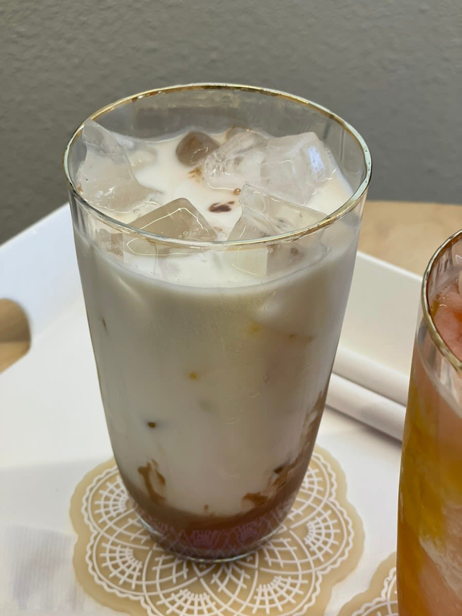 クロワッサン生地をワッフル型で焼きアイスクリームを添えたメニュー