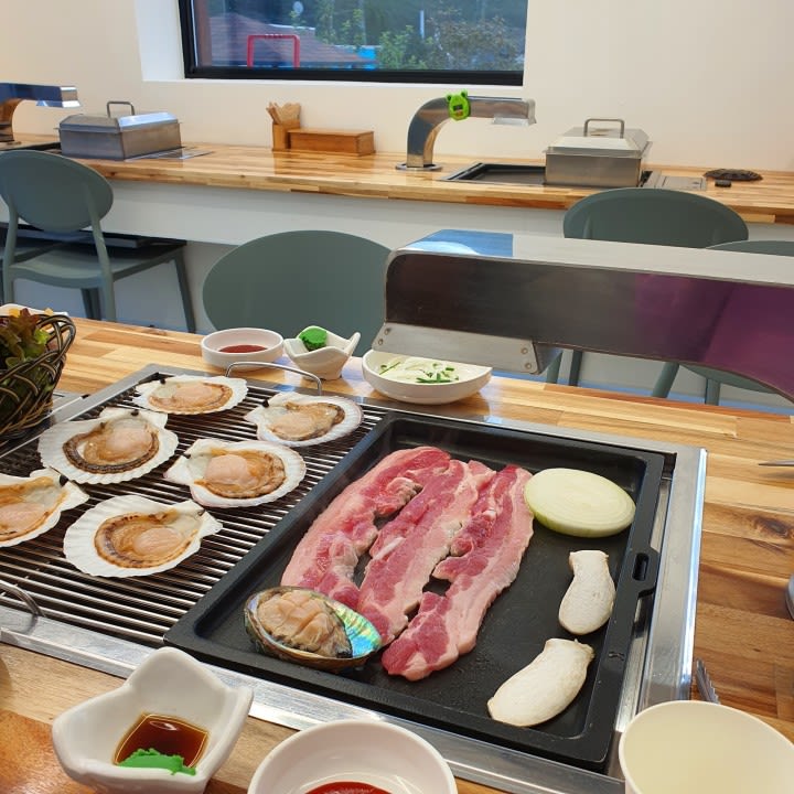 豚180g、ホタテ、タイラギ、アワビのセットメニュー