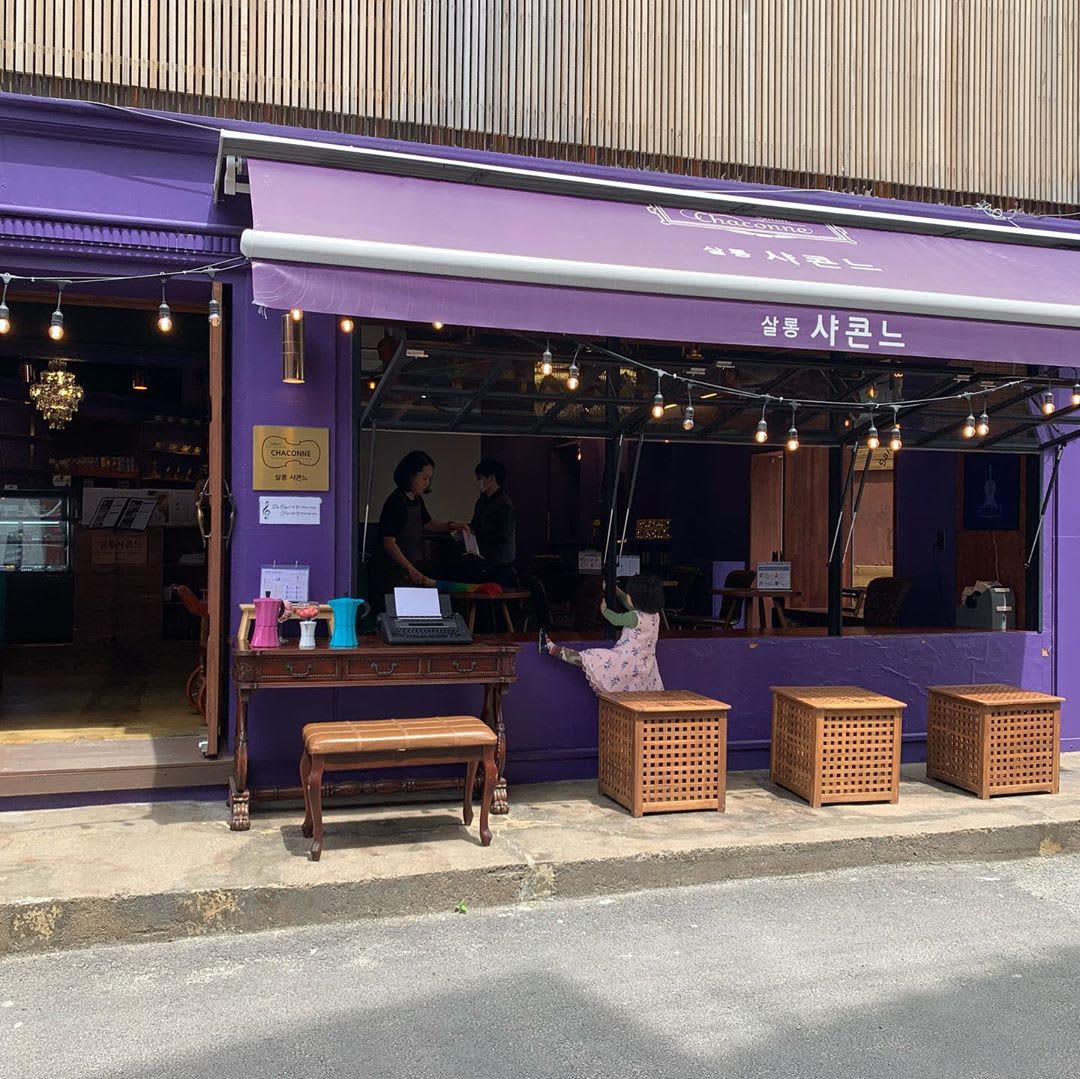 紫色の外観とアンティークな小物が印象的!クラシック音楽が聞けるカフェ
