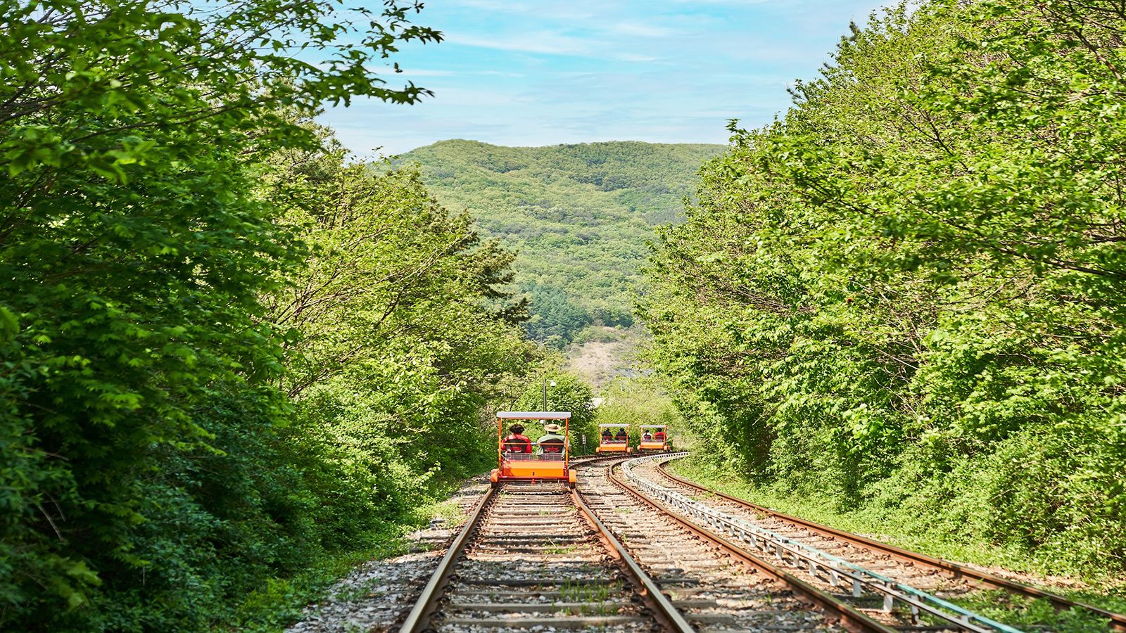 韓国の人気バラエティ番組でよく紹介される江村(カンチョン)レールバイクに乗って体と心を癒しましょう。