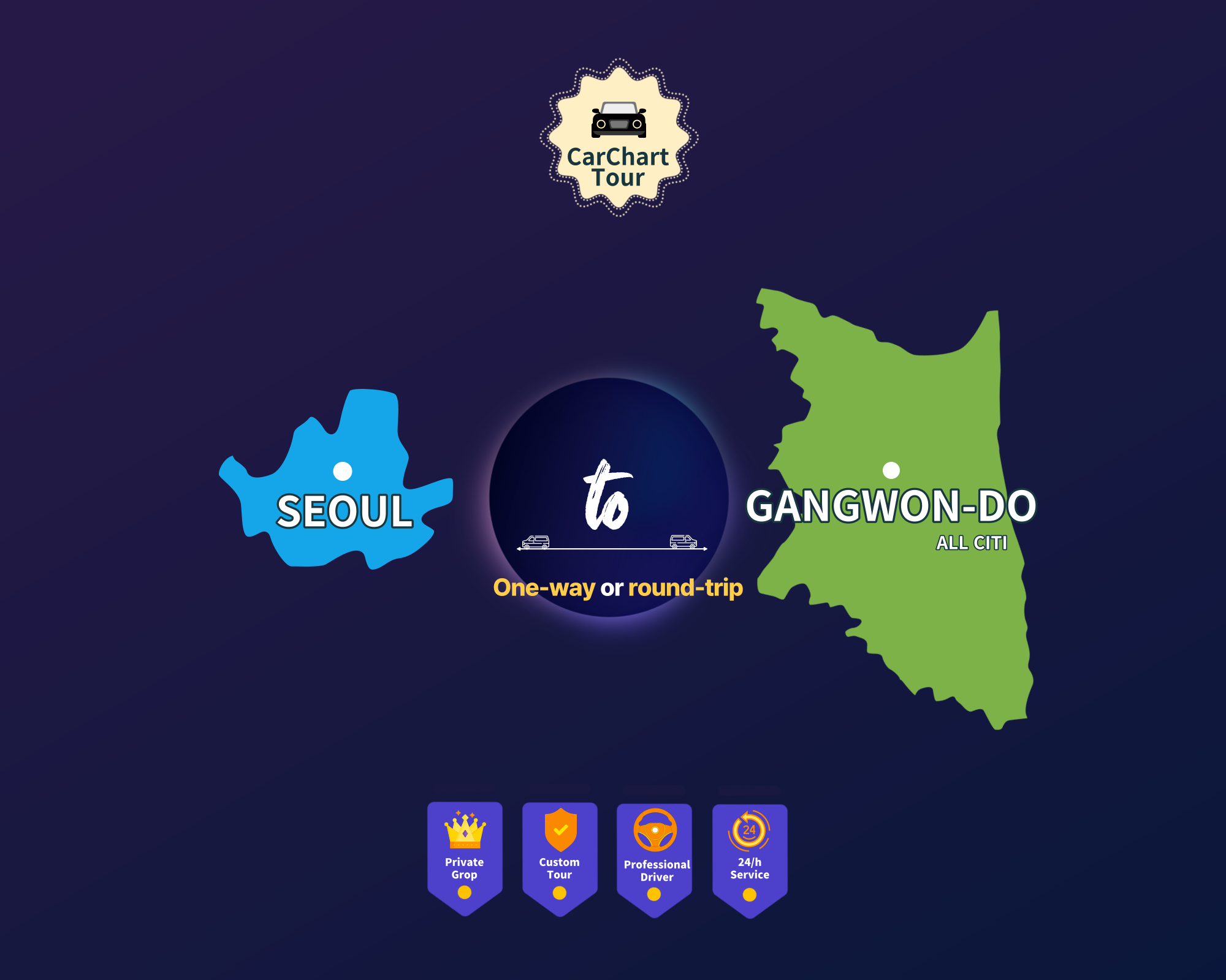 日本語を話すプロのドライバーが運転するこのカーチャーターで江原道を快適に移動しましょう。