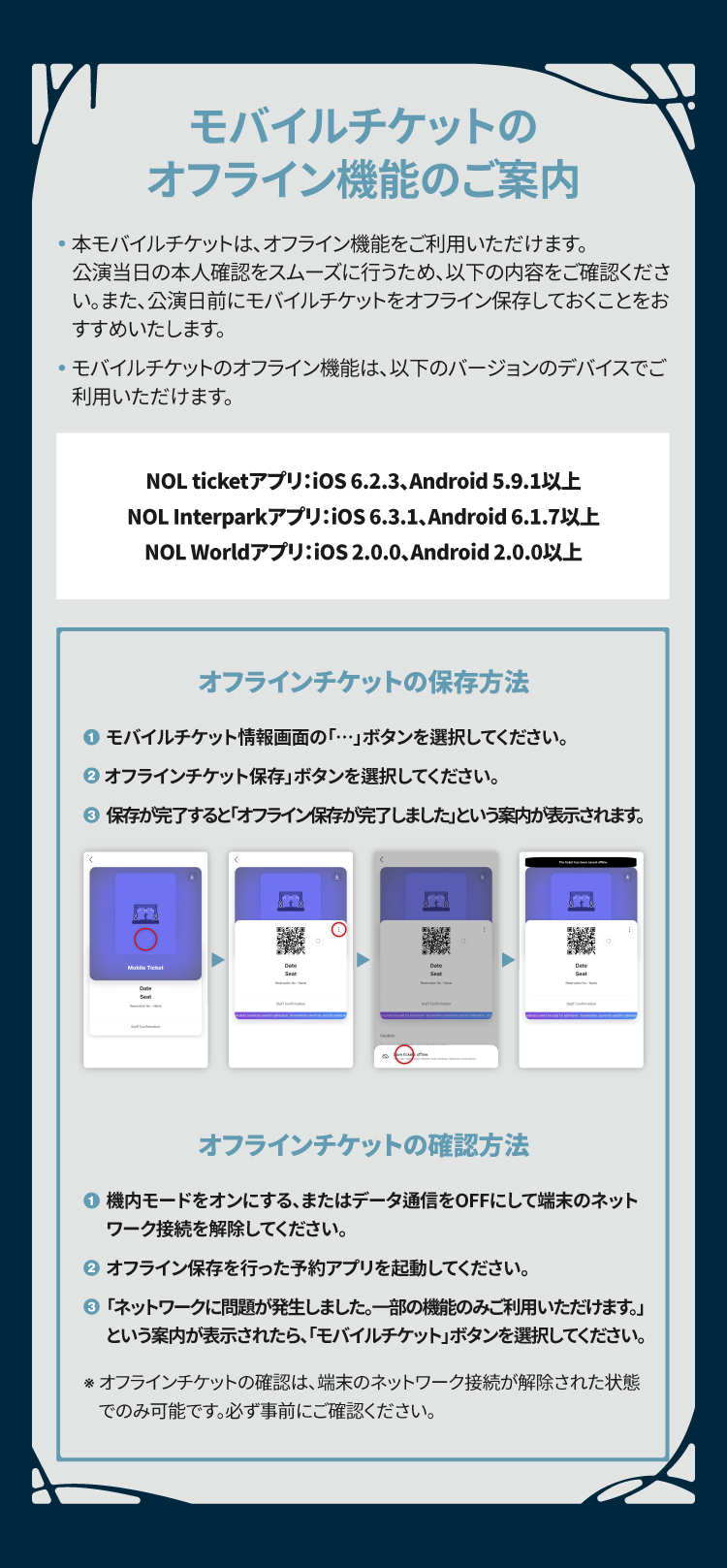 * Please prepare to present your mobile ticket beforehand. It may not be worked due to data traffic at the venue.