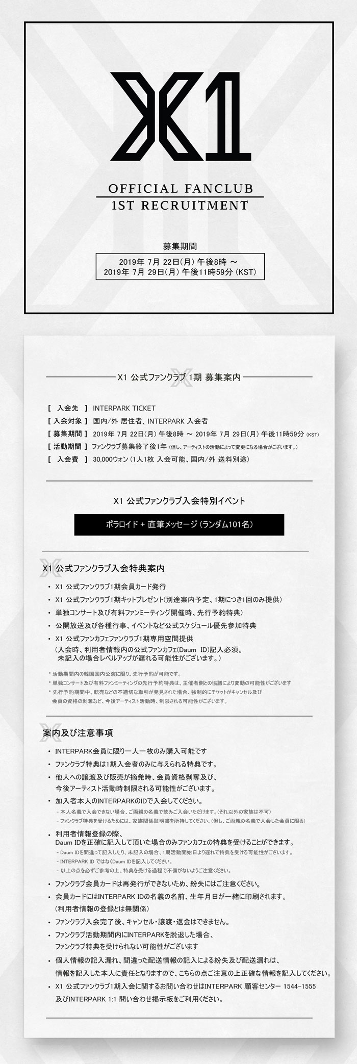 X1 1ST OFFICIAL FANCLUB RECRUITMENT | NOL World (interpark global)