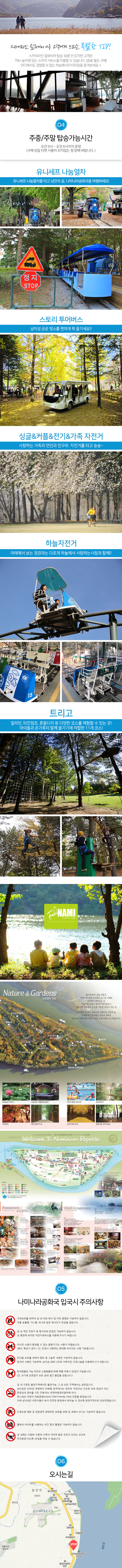 - アドベンチャーコース(ADVENTURE COURSE): スリル満点のスピード、 チャラ島-南怡島(ナミソム)まで専用の船舶を利用して移動します。