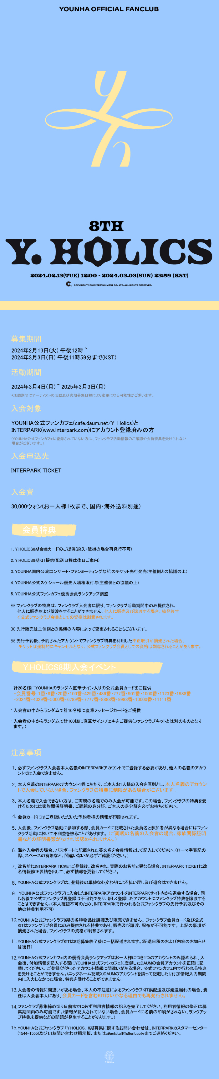 윤하(YOUNHA) 공식 팬클럽 〈Y.HOLICS 8기〉 모집