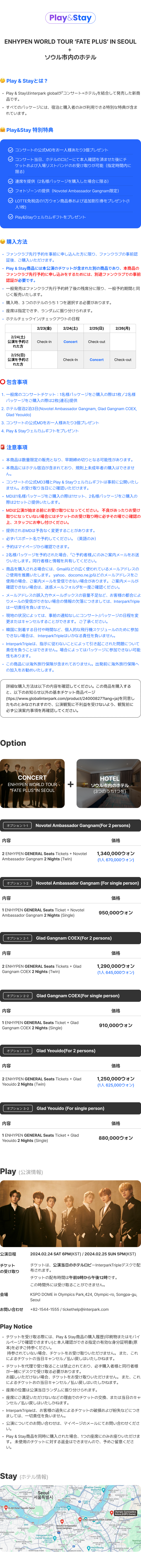 [Play&Stay]ENHYPEN WORLD TOUR “FATE PLUS”IN SEOUL+Hotels in Seoul
