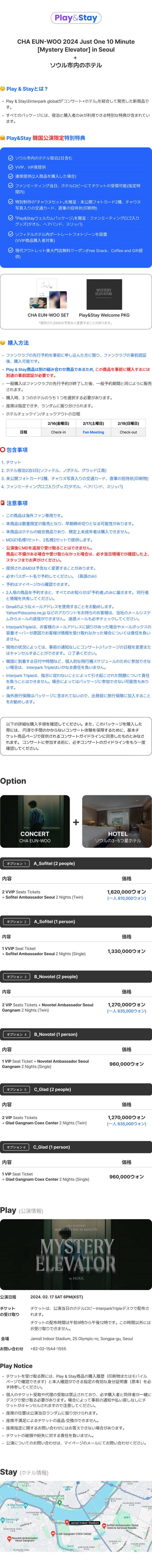 ![[Play&Stay] CHA EUN-WOO 2024 Just One 10 Minute [Mystery Elevator]in Seoul + Hotels in Seoul](https://ticketimage.interpark.com/Play/image/large/23/23018702_p.gif)