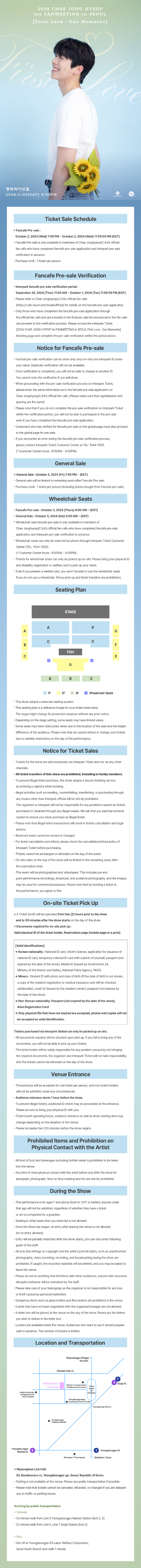 ※All purchasers will be automatically considered to be well-informed about all of the instruction on this ticket information page, and the detail can be added or changed depending on the situation. Please make sure to double-check the instructions in advance to avoid any disruption or disadvantage prior to attending the show.
