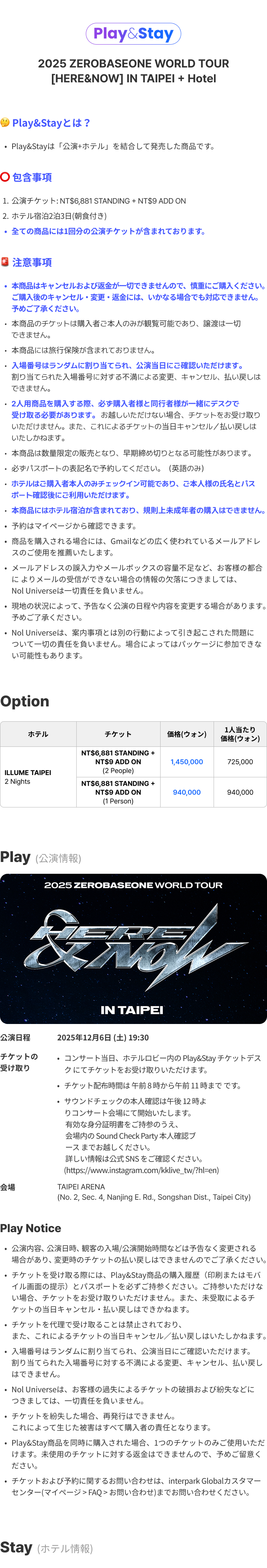 -本商品は 株式会社NOL Universe がコンサートチケットおよびホテルを事前に購入・確保したパッケージ商品であり、特別約款 が適用されます。