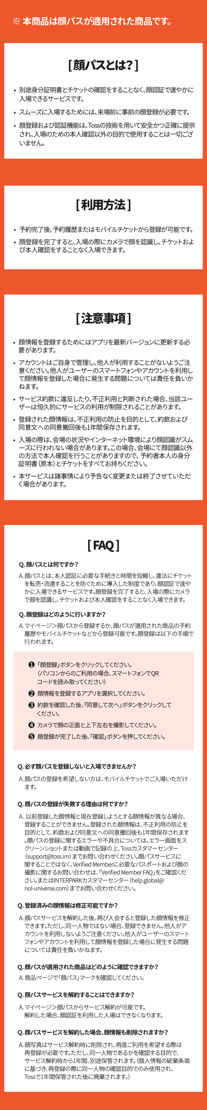 ※ This product includes Face Pass. For more information, please refer to our FAQs