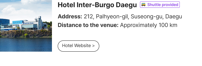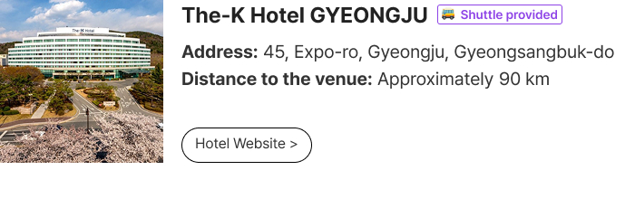(Grand Mercure Ambassador Changwon, Lahan Select Gyeongju, Hilton Gyeongju, Sono Calm Gyeongju, Kensington Resort Gyeongju, The-K Hotel GYEONGJU, Hotel Inter-Burgo Daegu, Daegu Marriott Hotel)